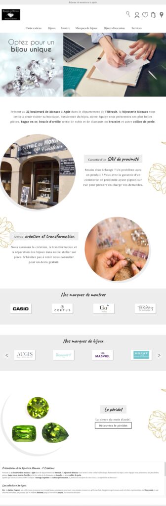 La prestation livrée a consisté à la création d’une plateforme entièrement fonctionnelle sous Magento 2, avec une interface soignée et adaptable à chaque bijoutier. Nous avons fourni un service complet, allant de la conception de l’architecture technique à la mise en ligne du site. En plus de l’aspect technique, une attention particulière a été portée à l’expérience utilisateur, avec un design responsive, intuitif et performant. Chaque bijoutier dispose ainsi d’un outil sur-mesure pour développer son activité tout en renforçant son lien avec sa clientèle locale.